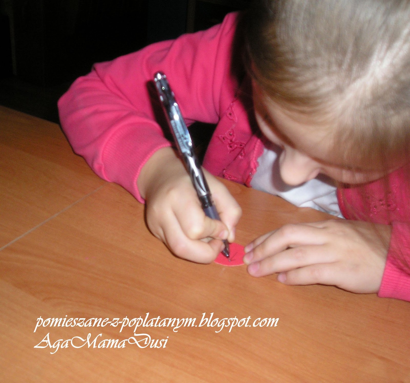 Dalej Dusia numerowała kółeczka a ja doklejałam je do paseczków.