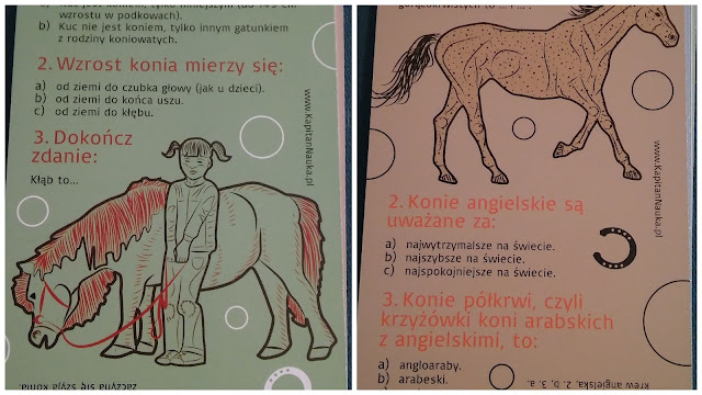 Pomyślicie: Eee no nawet całkiem fajny ten Quiz ale mego Dziecka to konie kompletnie nie interesują. Kapitan Nauka przewidział to, bo mądry z niego gość, który wie że gusta bywają różne. W związku z tym wybrać możecie inną tematykę np pieniądze (TU o nim pisałam), świat, zwierzęta, piłka nożna czy ciało człowieka.
